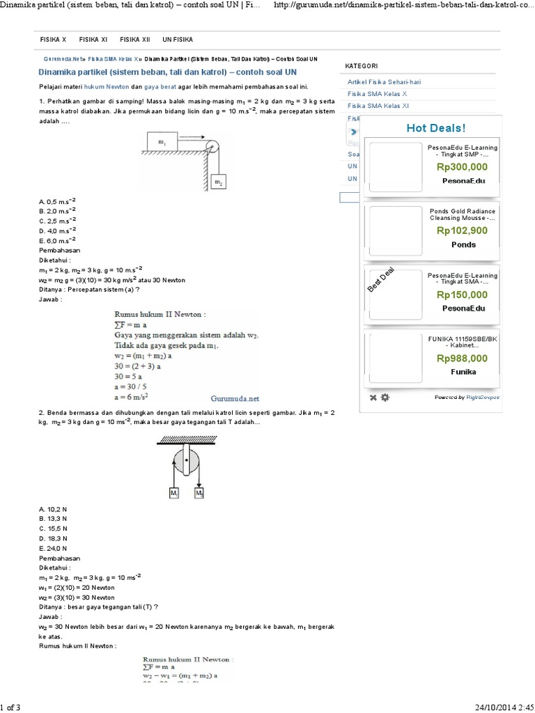 Dinamika Hukum Newton Soal Dan Pembahasannya
