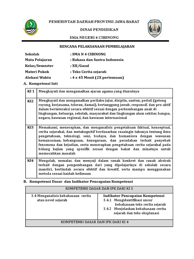 Pdf Rencana Pelaksanaan Pembelajaran Rpp Teks Cerita Sejarah Iga Noor Khayati Academia Edu